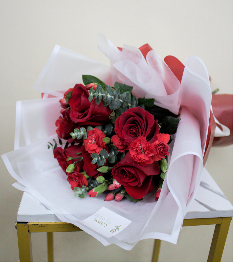 Enciende la llama del romance con "Latido Eterno", un ramo apasionado diseñado para dejar una huella imborrable en el corazón. Este arreglo destaca por la intensidad de sus rosas rojas premium, seleccionadas por su frescura y color vibrante, que se entrelazan armoniosamente con delicados claveles. Envuelto en un elegante papel coreano que realza su sofisticación, es la elección perfecta para aniversarios, declaraciones de amor o momentos donde las palabras no bastan. Creado bajo El arte de crear emociones, este ramo de Lazos Florería convierte un sentimiento profundo en un regalo inolvidable.