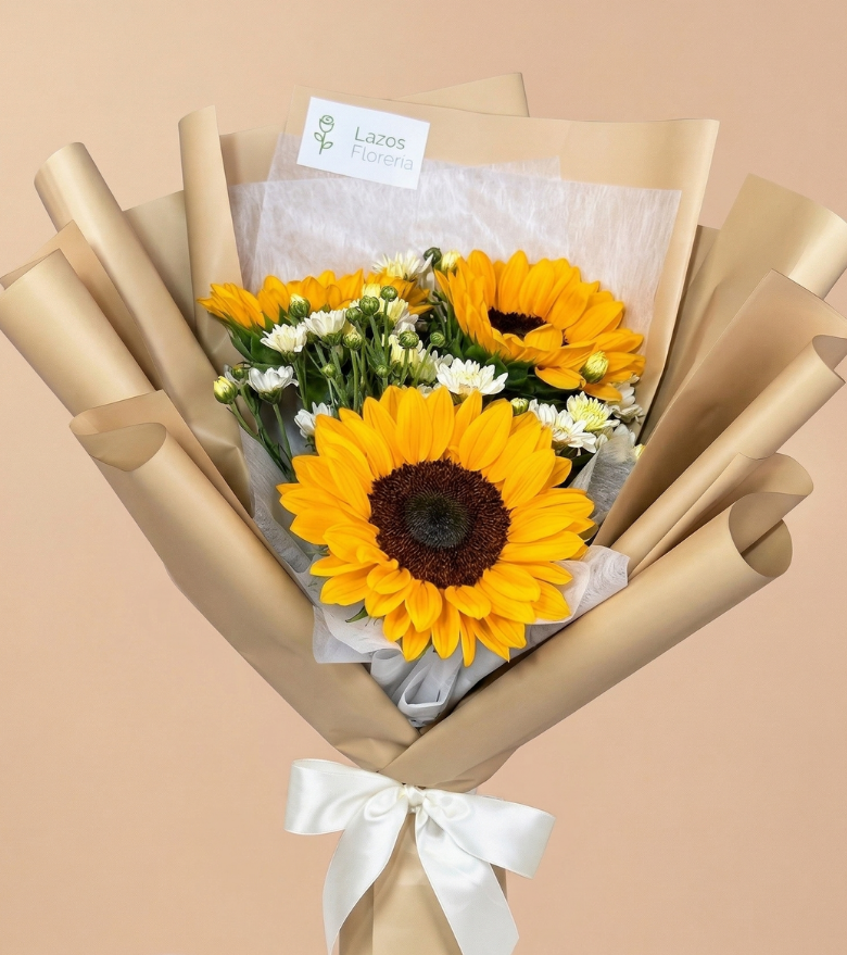 Ramo de Girasoles y Margaritas es la representación perfecta de la luz interior, la alegría genuina y la energía positiva que transforma cualquier espacio. Sus vibrantes girasoles simbolizan éxito y vitalidad, mientras que las margaritas evocan pureza, amistad y ternura .