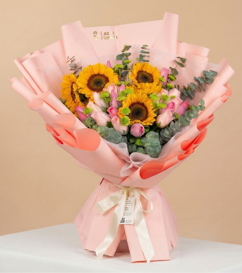Ramo Surprise es la expresión más impactante de amor auténtico y desbordante. Diseñado para quienes desean sorprender con un detalle inolvidable, este ramo combina la calidez de los girasoles, el romanticismo de las rosas y la frescura del eucalipto en una presentación majestuosa que deja sin palabras .